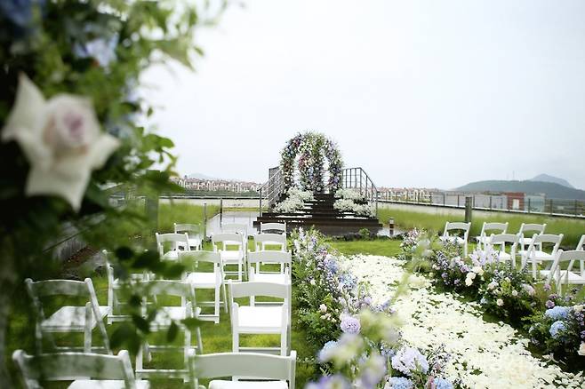 최상의 시스템과 커스터마이징 서비스로 빛나는 순간을 조각한다. 한편 제주의 전경이 내려다보이는 랜딩 리조트 가든에서는 최대 100명을 수용하는 프라이빗 웨딩을 구현할 수 있다.