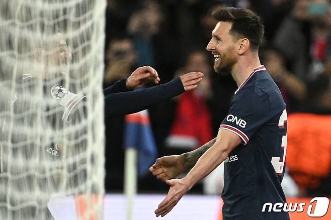(파리 AFP=뉴스1) 우동명 기자 = 파리 생제르맹(PSG)의 리오넬 메시가 19일(현지시간) 파리의 파르크 데 프랭스에서 열린 라이프치히와 UEFA 챔피언스리그 조별리그 라이프치히와 경기서 골을 넣은 뒤 기뻐하고 있다.
