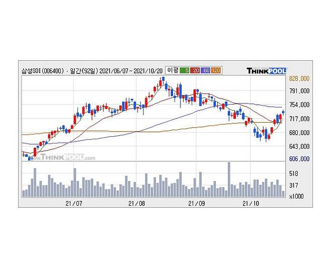 삼성SDI는 20일 오후 12시30분 현재 전일보다 0.83% 상승한 73만3000원에 거래 중이다.