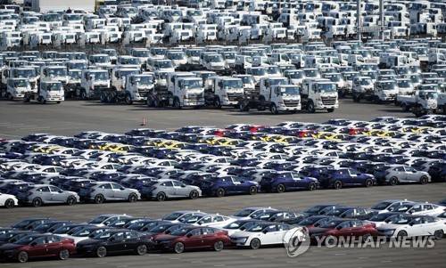 epa09533467 (FILE) New vehicles for export are parked at a port in Yokohama, near Tokyo, Japan, 08 December 2020 (reissued 20 October 2021). According to data released by the government, Japan's car exports fell by 40.3 per cent in September due to the pandemic and semiconductor shortage. EPA/FRANCK ROBICHON