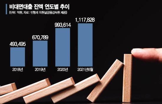 국회 정무위원회 민형배 더불어민주당 의원이 금융감독원을 통해 받은 자료에 따르면 올해 상반기 기준 국내 18개 은행의 비대면대출 잔액은 111조7828억원으로 2017년 말 39조4093억원의 2.8배 수준이다. 대출 접수부터 실행까지 모두 비대면으로만 진행되는 100% 비대면대출은 올 상반기 기준 95조7414억원으로 전체의 85.6%를 차지한다.