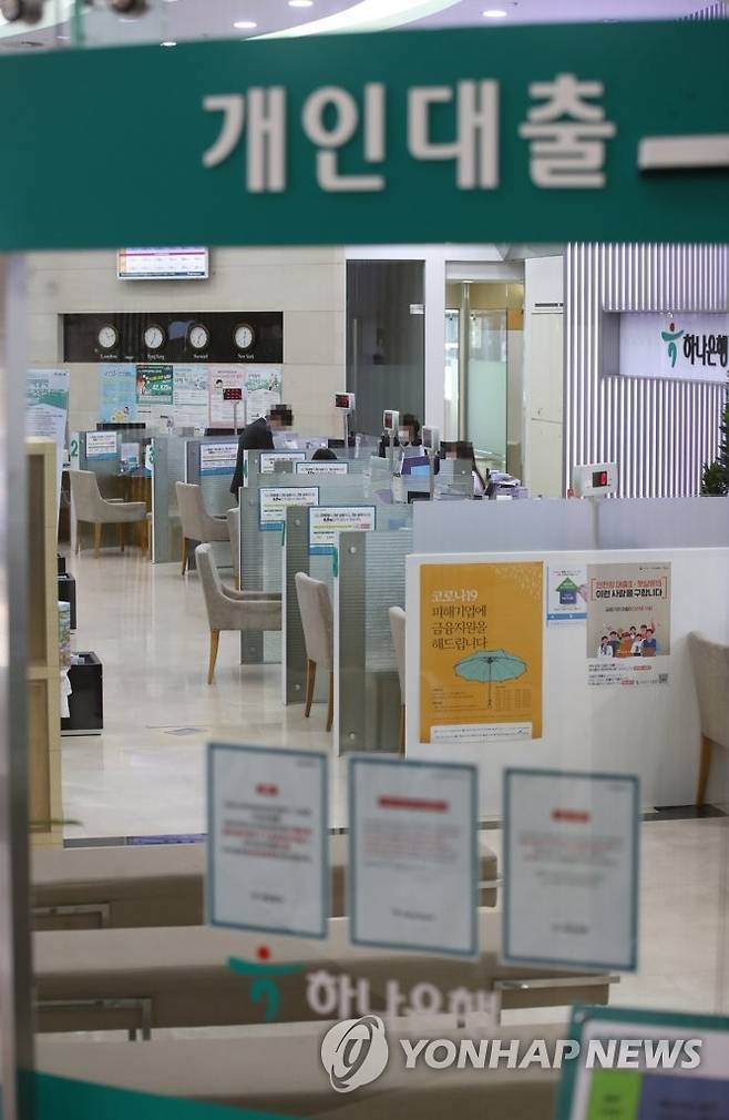 (서울=연합뉴스) 박동주 기자 = 하나은행이 전세자금 대출은 계속하되 신용대출과 부동산 대출 판매를 20일부터 잠정 중단하기로 했다.