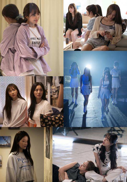 특히 누군가를 향해 날 선 눈빛을 겨누는 리더 제나(안희연 분)와 굳은 표정의 맏언니 스텔라(한소은 분)의 면면에서는 싸늘한 공기가 느껴진다. 또 옹기종기 모여있는 멤버들을 등지고 돌아앉은 막내 현지(안솔빈 분)와 메인 보컬 엘(추소정 분)의 수심 가득한 모습에선 멤버들 사이에 미묘한 갈등과 고민이 쌓여 있음을 짐작케 한다.