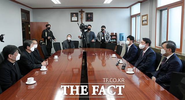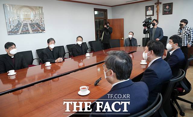 [더팩트ㅣ임영무 기자] 윤석열 국민의힘 대선 경선 후보가 20일 오전 대구 중구 천주교 대구 대교구청을 방문해 조환길 대주교와 인사를 하고 있다.