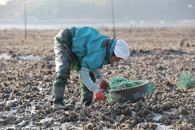 (서울=연합뉴스) 문화재청이 우리나라 갯벌에서 패류와 연체류를 채취하는 어로 기술, 전통 지식, 공동체 조직문화, 의례·의식을 아우르는 '갯벌어로'를 국가무형문화재로 지정 예고했다고 20일 밝혔다. 사진은 갯벌에서 굴을 채취하는 모습. 2021.10.20