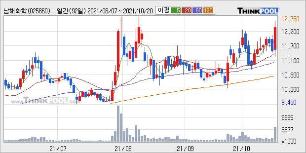 '남해화학' 52주 신고가 경신, 단기·중기 이평선 정배열로 상승세