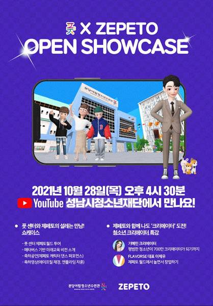 한편, 이번 개관 쇼케이스는 성남시청소년재단 유튜브 채널을 통해 실시간 중계하며, 수련관 메타버스는 제페토 앱을 다운받아 분당야탑청소년수련관을 검색하면 누구나 활용할 수 있다.