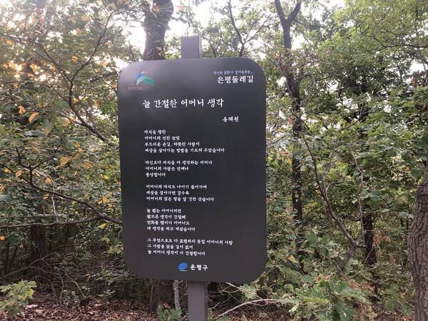 이번에는 은평둘레길 2코스다. 가면 좋은 줄 알지만 몸이 아직 먼저 움직이지는 않는다. 하지만 "고작, 은평둘레길 1코스 소개하고 끝이냐?" 질책할 것만 같은 목소리가 상상돼 가만히 있을 수도 없었다. 늦은 점심을 마치고 서둘러 길을 나섰다. 새로 산 신발을 신고 나서니 한결 발걸음이 가볍다.