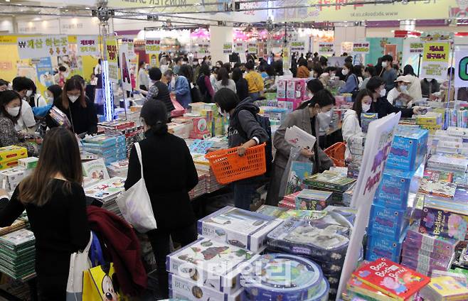 [이데일리 김태형 기자] 20일 서울 삼성동 코엑스에서 열린 ‘제48회 서울국제유아교육전&키즈페어’를 방문한 관람객들이 유아용 도서 등을 살펴보고 있다.
