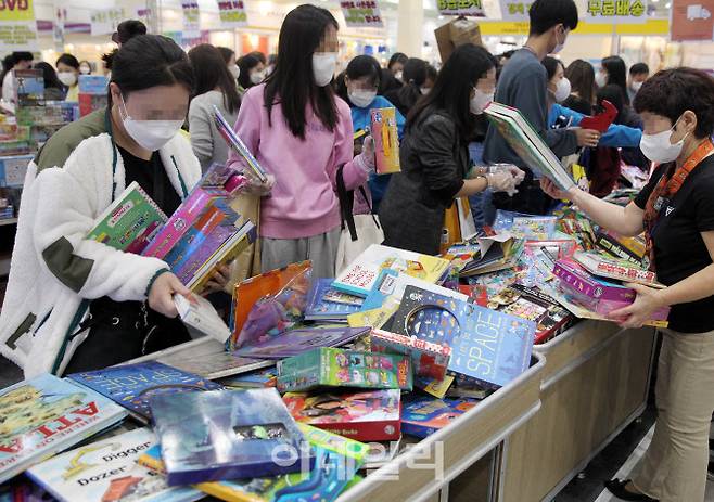 [이데일리 김태형 기자] 20일 서울 삼성동 코엑스에서 열린 ‘제48회 서울국제유아교육전&키즈페어’를 방문한 관람객들이 유아용 도서 등을 살펴보고 있다.