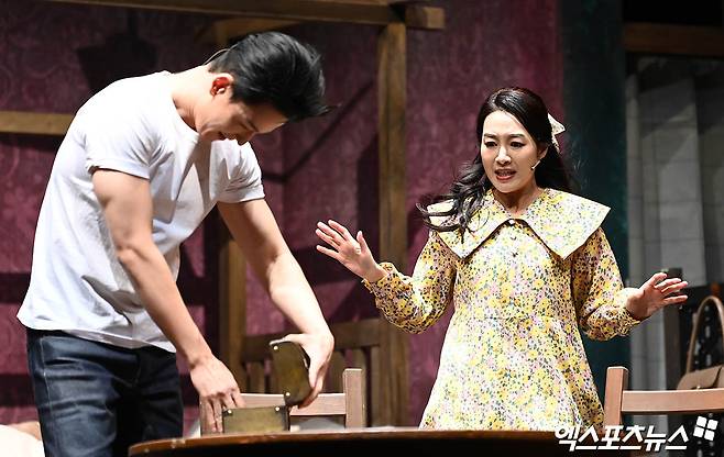 (엑스포츠뉴스 박지영 기자) 20일 오후 서울 연건동 홍익대 대학로아트센터에서 열린 연극 '욕망이라는 이름의 열차' 프레스콜에 참석한 배우 임주환, 배정화가 하이라이트 시연을 선보이고 있다.