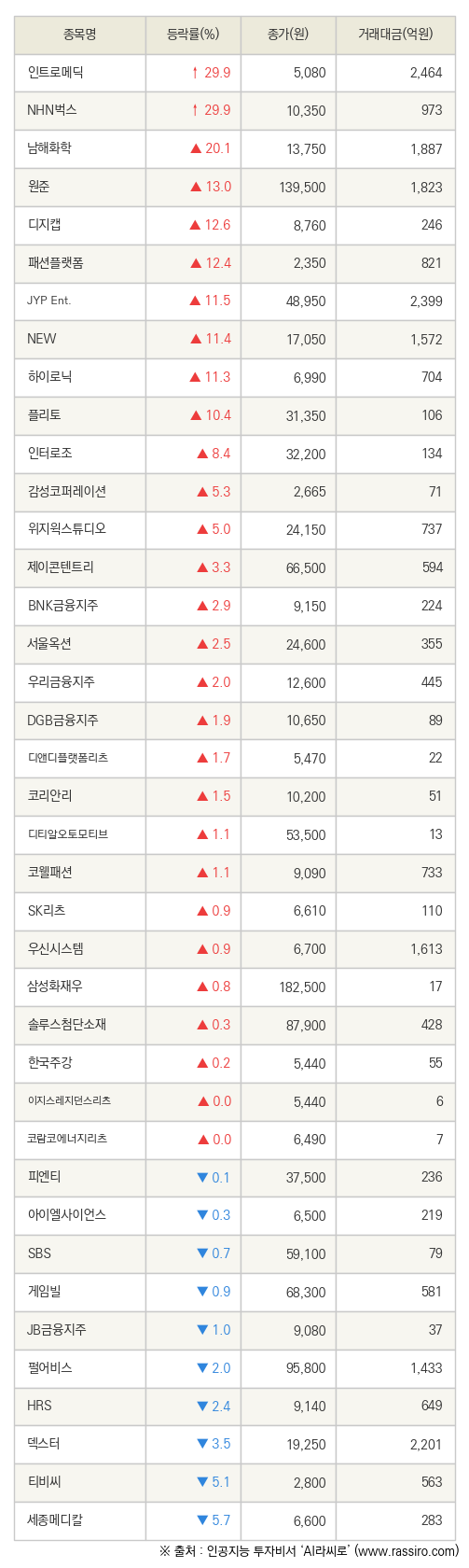[fnRASSI]인트로메딕, NHN벅스 등 39종목 52주 신고가 경신