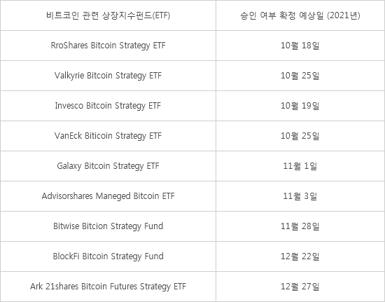 ETF 상품인 BITO는 가상자산과 달리 가상자산거래소 계정이나 전자지갑을 보유하지 않고도 주식처럼 투자할 수 있다. 시카고선물거래소(CME)에서 거래되는 비트코인 선물 계약을 통해 비트코인 가격을 추종하는 상품이다. 연내 출시를 앞둔 비트코인 ETF 상품이 적지 않아 가상자산 상승 랠리를 이끌어갈 것이라는 전망도 나온다.
