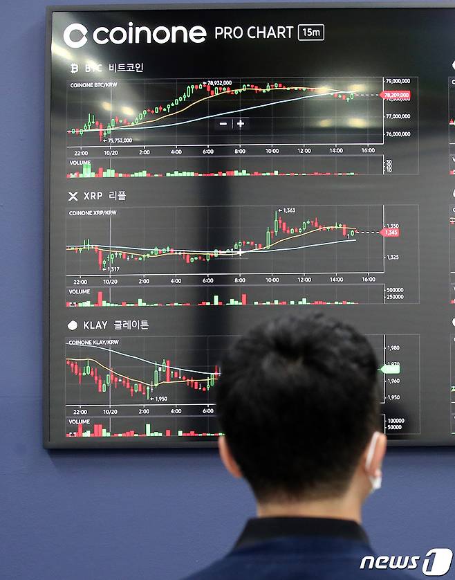 사진은 20일 오후 서울 용산구 코인원 고객센터 모니터에 비트코인 시세가 표시돼 있는 모습.