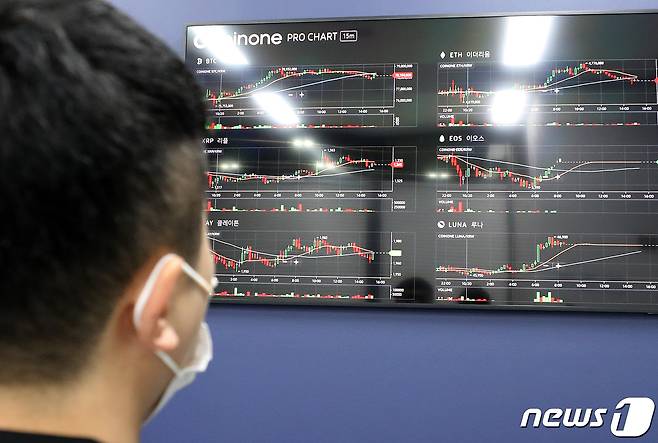 사진은 20일 오후 서울 용산구 코인원 고객센터 모니터에 비트코인 시세가 표시돼 있는 모습.