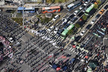[서대문역에 기습 집결한 총파업 참가자들 (서울=연합뉴스)]