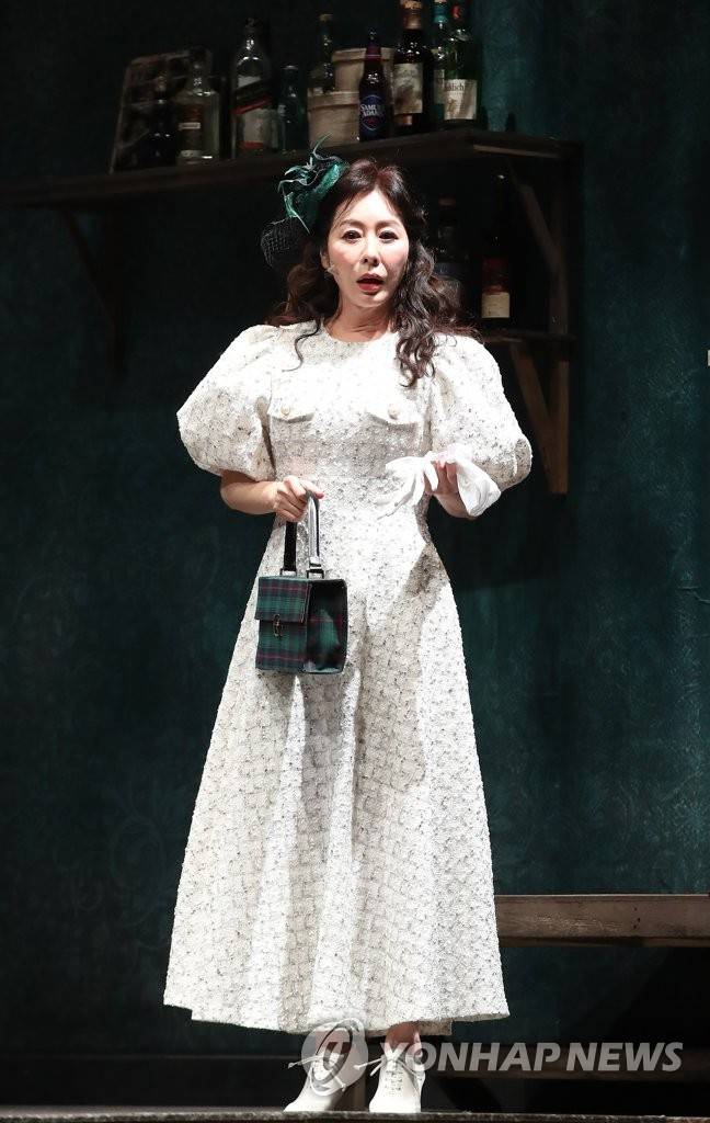 (서울=연합뉴스) 강민지 기자 = 20일 오후 서울 종로구 홍익대 대학로 아트센터 대극장에서 열린 연극'욕망이라는 이름의 전차'프레스콜에서 배우 김예령이 하이라이트 시연을 하고 있다. 2021.10.20
