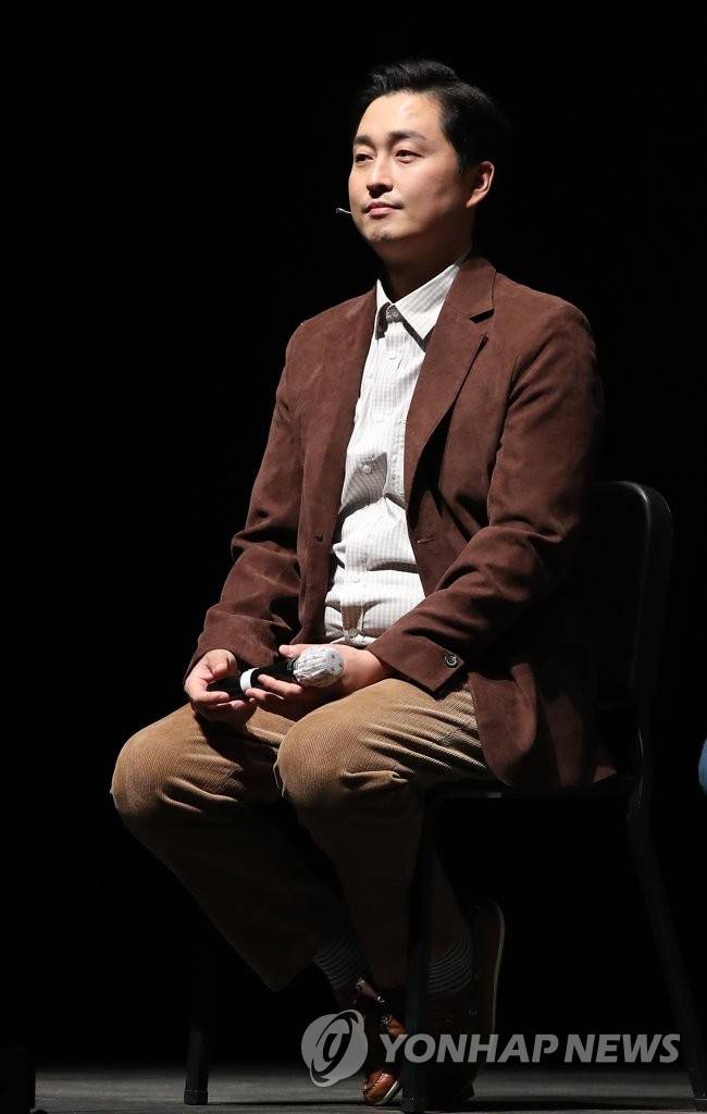 (서울=연합뉴스) 강민지 기자 = 20일 오후 서울 종로구 홍익대 대학로 아트센터 대극장에서 열린 연극'욕망이라는 이름의 전차'프레스콜에서 배우 김혁종이 취재진의 질문을 듣고 있다. 2021.10.20