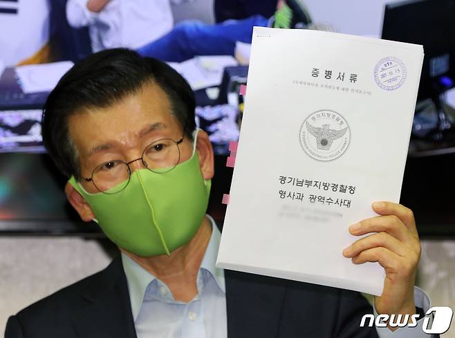 (성남=뉴스1) 김영운 기자 = 20일 오후 경기도 성남시 수정구 법무법인 디지털 사무실에서 장영하 변호사가 박철민의 사실확인서 등을 신뢰 하는 이유에 대해 기자회견을 하고 있다. 2021.10.20/뉴스1