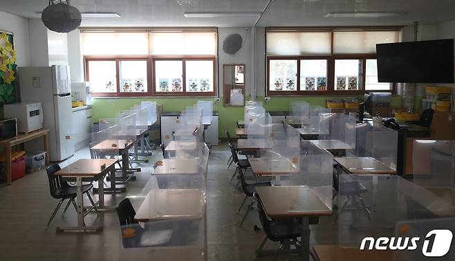 (화성=뉴스1) 김영운 기자 = 전국 학교비정규직노조가 총파업에 들어가면서 일부 학교에서 돌봄교실 운영이 중단된 20일 오후 경기도의 한 학교 돌봄교실에 불이 꺼져있다. 2021.10.20/뉴스1
