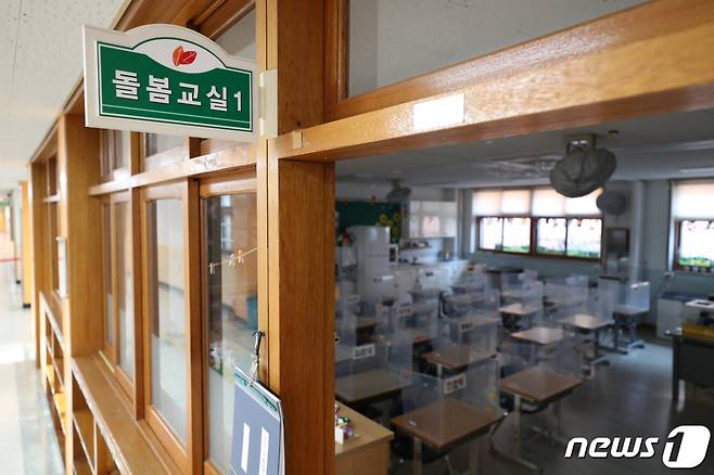 (화성=뉴스1) 김영운 기자 = 전국 학교비정규직노조가 총파업에 들어가면서 일부 학교에서 돌봄교실 운영이 중단된 20일 오후 경기도의 한 학교 돌봄교실에 불이 꺼져있다. 2021.10.20/뉴스1
