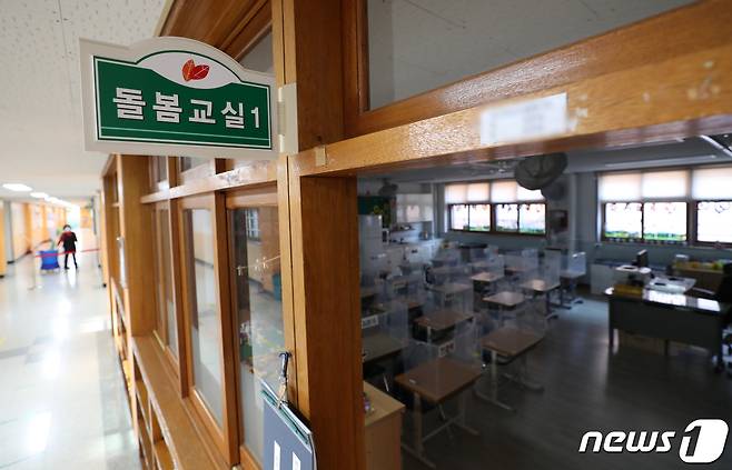 (화성=뉴스1) 김영운 기자 = 전국 학교비정규직노조가 총파업에 들어가면서 일부 학교에서 돌봄교실 운영이 중단된 20일 오후 경기도의 한 학교 돌봄교실에 불이 꺼져있다. 2021.10.20/뉴스1
