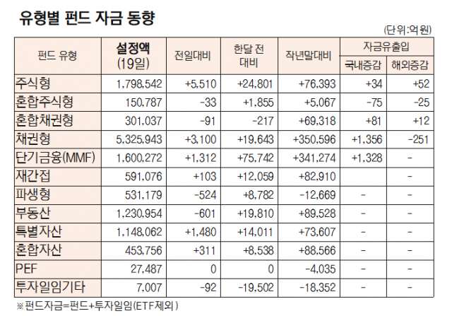 [표]유형별 펀드 자금 동향(10월 19일)