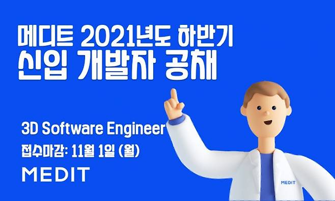 [헤럴드경제 도현정 기자]3D 덴탈 스캐닝 솔루션 기업 메디트(대표 고규범)가 다음달 1일까지 2021년 하반기 공개 채용을 실시한다.