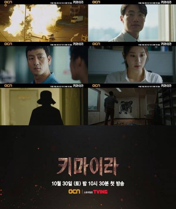 예측할 수 없는 흥미진진한 전개와 풍성한 볼거리로 많은 관심을 모으고 있는 ‘키마이라’는 오는 30일(토) 밤 10시 30분 OCN에서 첫 방송될 예정이다.