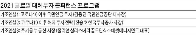 이번 ‘ASK 2021 글로벌 대체투자 콘퍼런스’엔 국내외 50여 개 투자기관 100여 명의 글로벌 투자 전문가가 발표자와 패널, 토론자 등으로 나선다. 콘퍼런스는 오전과 오후로 나뉘어 하루 동안 진행된다. 오전엔 주로 글로벌 부동산 시장을, 오후엔 인프라·사모주식·사모대출·세컨더리펀드 등을 중심으로 발표와 토론이 이뤄진다.