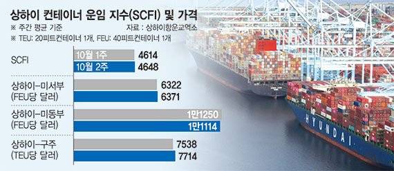 실제 세계 컨테이너선 운임 지표인 '상하이 컨테이너선 운임지수(SCFI)'는 3·4분기에 평균 4289를 유지했다. 전분기 대비 31.6% 증가한 수치다. 연말을 앞둔 3·4분기부터는 추수감사절, 블랙프라이데이, 크리스마스 성수기 효과로 수요 강세가 이어지는 게 일반적이다. 해운업계는 해상 물동량 증가와 항만체선, 내륙운송 지연 등이 맞물리면서 운임 상승이 이어지고 있다고 분석했다. 최근 전국경제인연합회가 조사전문기관 모노리서치에 의뢰해 매출 1000대 수출기업들의 해운물류 애로 사항을 조사한 내용에서도 올 상반기 물류비는 전년동기 대비 30.9% 증가했고, 하반기는 23.8% 상승할 것으로 전망됐다.