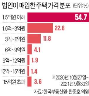 법인이 최근 1년간 매수한 주택 10가구 중 약 8가구는 3억원 이하인 것으로 나타났다.