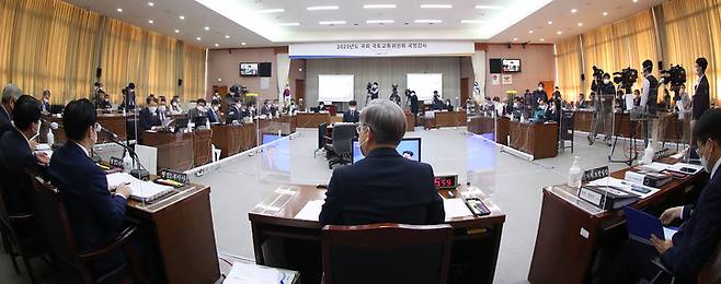 [수원=뉴시스]박상욱 이병희 기자 = 20일 국회 국토교통위원회의 경기도에 대한 국정감사에서 여야 의원들은 대장동 개발 특혜 의혹을 둘러싸고 고성과 비방 등 설전을 이어갔다.
