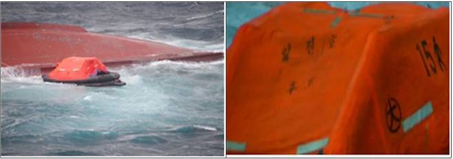 한일 공동수역 홍게잡이 어선 전복 사고 구명벌 발견
