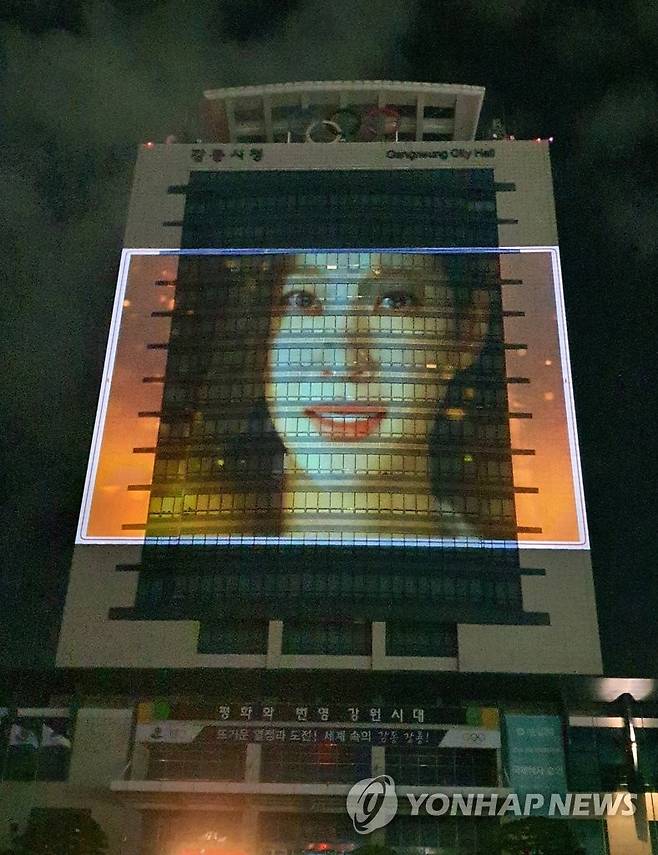 (강릉=연합뉴스) 유형재 기자 = 강원 강릉시가 20일 오후 8시부터 2시간 동안 '제3회 강릉국제영화제' 개최를 기념하고자 대형 빔프로젝트 여러 대를 사용해 시청사 벽면에 영화제 주요 상영작의 하이라이트를 상영하고 있다.