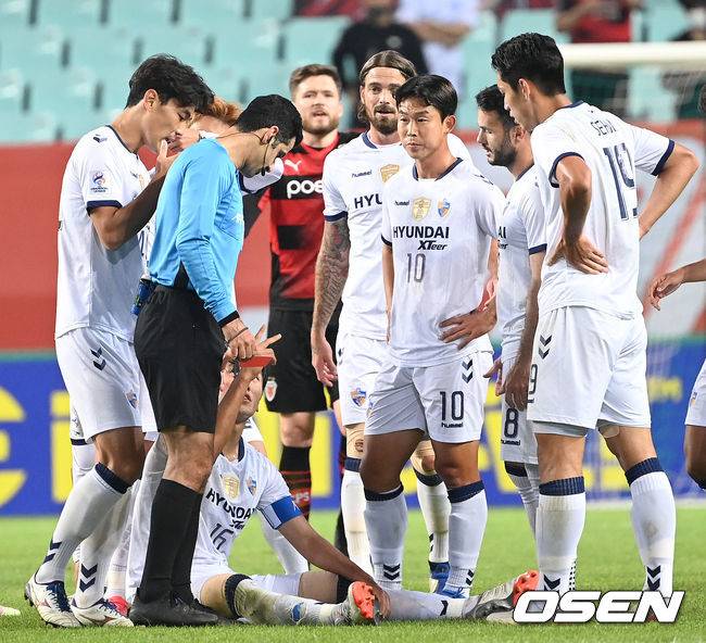 후반 울산 원두재가 깊은 태클로 레드카드를 받고 있다. 2021.10.20 / dreamer@osen.co.kr