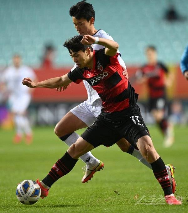 20일 전주월드컵경기장에서 열린 울산과 포항의 2021 아시아축구연맹(AFC) 챔피언스리그(ACL) 4강전에서 포항 임상협이 울산의 수비를 뚫고 공격하고 있다.