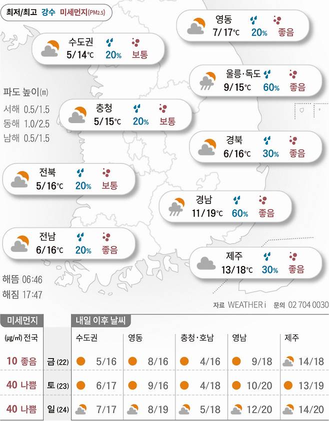 2021년 10월 21일 전국 대체로 맑음..경남권 해안 가끔 비 [오늘의 날씨]