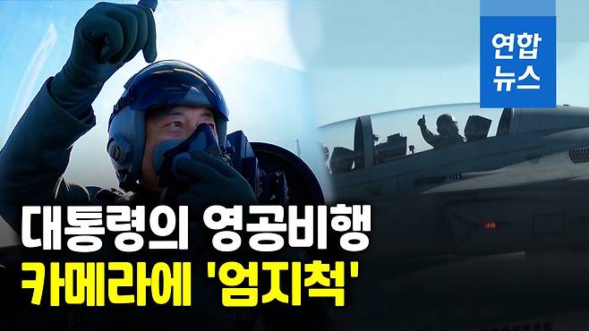문 대통령은 20일 오전 수원 공군기지에서 최초의 국산 전투기인 FA50에 탑승해 천안과 서울 상공을 날았는데요. 비행복 차림으로 조종석 뒷자리에 탑승해 카메라를 향해 엄지를 치켜세우기도 했습니다.