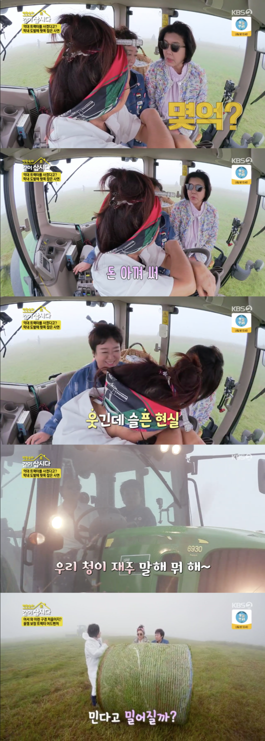 김청은 혜은이와 김영란을 트랙터를에 태웠고, 김청은 “이거 몇 억 짜리야. 큰언니(박원숙)한테 사달라고 하려고”라고 말다. 이를 들은 김영란은 “돈 아껴 써. 우리 드라마 언제 들어갈지 몰라”라고 말해 웃음을 자아냈다.