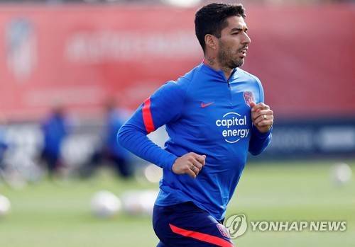 epa09534092 A handout photo made available by Spanish La Liga soccer club Atletico Madrid of Luis Suarez during his team's training session at Wanda Sport Complex in Majadahonda, Madrid, Spain, 20 October 2021. Atletico Madrid will face Real Sociedad in their Spanish LaLiga soccer match on 24 October 2021. EPA/Atletico Madrid HANDOUT HANDOUT EDITORIAL USE ONLY/NO SALES