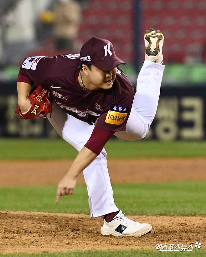 (엑스포츠뉴스 잠실, 고아라 기자) 20일 오후 서울 송파구 잠실야구장에서 열린 '2021 신한은행 SOL KBO리그' 키움 히어로즈와 LG 트윈스의 경기, 8회말 키움 김재웅이 공을 힘차게 던지고 있다.