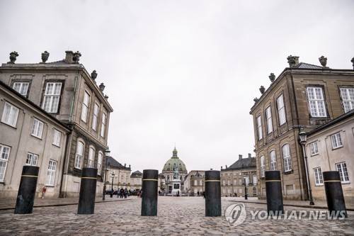 epa09534154 Amalienborg Castle Square surrounded by bollards to prevent terrorist attacks with cars, in Copenhagen, Denmark, 20 October 2021. EPA/Liselotte Sabroe DENMARK OUT
