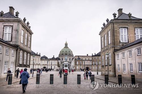 epa09534152 Amalienborg Castle Square surrounded by bollards to prevent terrorist attacks with cars, in Copenhagen, Denmark, 20 October 2021. EPA/Liselotte Sabroe DENMARK OUT