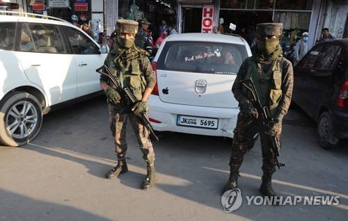 epa09534165 Female Indian paramilitary soldiers stand guard during surprise frisking in main city center Lal Chowk in Srinagar, the summer capital of Indian Kashmir, 20 October 2021. Security has been beefed up in Indian Kashmir following the killings of non-local labourers. Eleven civilians, including five non-locals and three minority community members have been killed by unidentified gunmen in targeted attacks during the past two weeks. EPA/FAROOQ KHAN