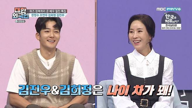 20일 오후 방송된 MBC에브리원 ‘대한외국인’은 ‘안 싸우면 다행이야’ 특집으로 절친 배우 한정수와 조연우, 김희정과 김진우가 출연했다.