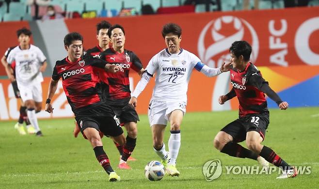 (전주=연합뉴스) 최영수 기자 = 20일 오후 전북 전주월드컵경기장에서 열린 아시아축구연맹(AFC) 챔피언스리그(ACL) 준결승전에서 울산 이청용이 포항 수비를 돌파하고 있다. 2021.10.20