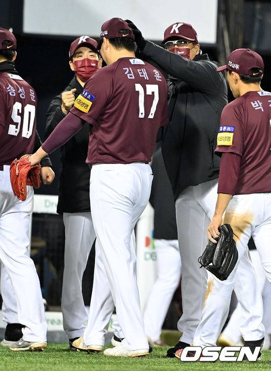 홍원기 감독, '김태훈, 수고했어' [사진]