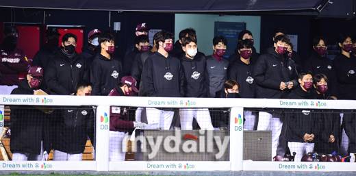 [마이데일리 = 곽경훈 기자] 키움이 20일 오후 서울 잠실야구장에서 진행된 '2021 신한은행 SOL KBO리그' 키움-LG의 경기에서 9회말 1점차로 추격을 허락하자 긴장된 표정으로 경기를 지켜보고 있다.- ⓒ마이데일리(www.mydaily.co.kr). 무단전재&재배포 금지 -