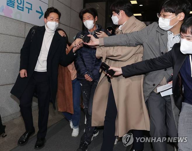 (서울=연합뉴스) 한종찬 기자 = 대장동 개발 로비·특혜 의혹 사건의 핵심 인물인 남욱 변호사가 20일 오후 서울 서초구 서울중앙지검에서 조사를 마친 뒤 밖으로 나서고 있다. 2021.10.20
